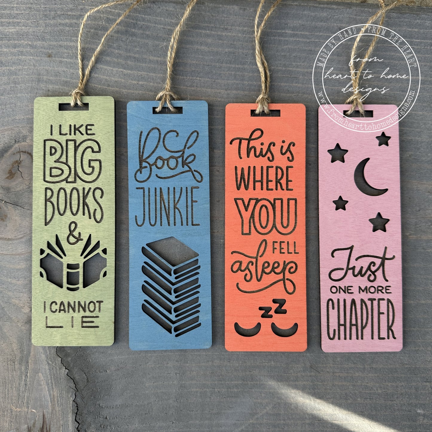 Bookmarks are engraved and cut on 1/8" birch plywood, each one is hand painted.
